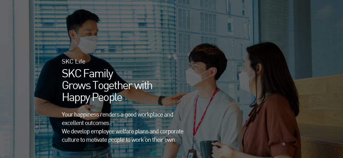 We support SKC people to continuously develop themselves to master foreign languages and obtaining necessary professional credentials. A wide variety of self-development programs such as SK Group’s mySUNI are at their disposal.