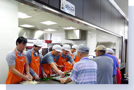The workers from the SKC Film Division, Suwon Plant have visited SK Cheongsol Senior Welfare Center and provided volunteer meal services. They have also accompanied the inmates.