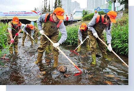 SKC has continuously cleaned environments around its business site. For example, Suwon Plant has protected Gwanggyosan Mountain and Seohocheon Stream. In addition, the workers from Ulsan Plant have taken the initiative in preserving Solmaru-gil Trail and the Taehwagang River.