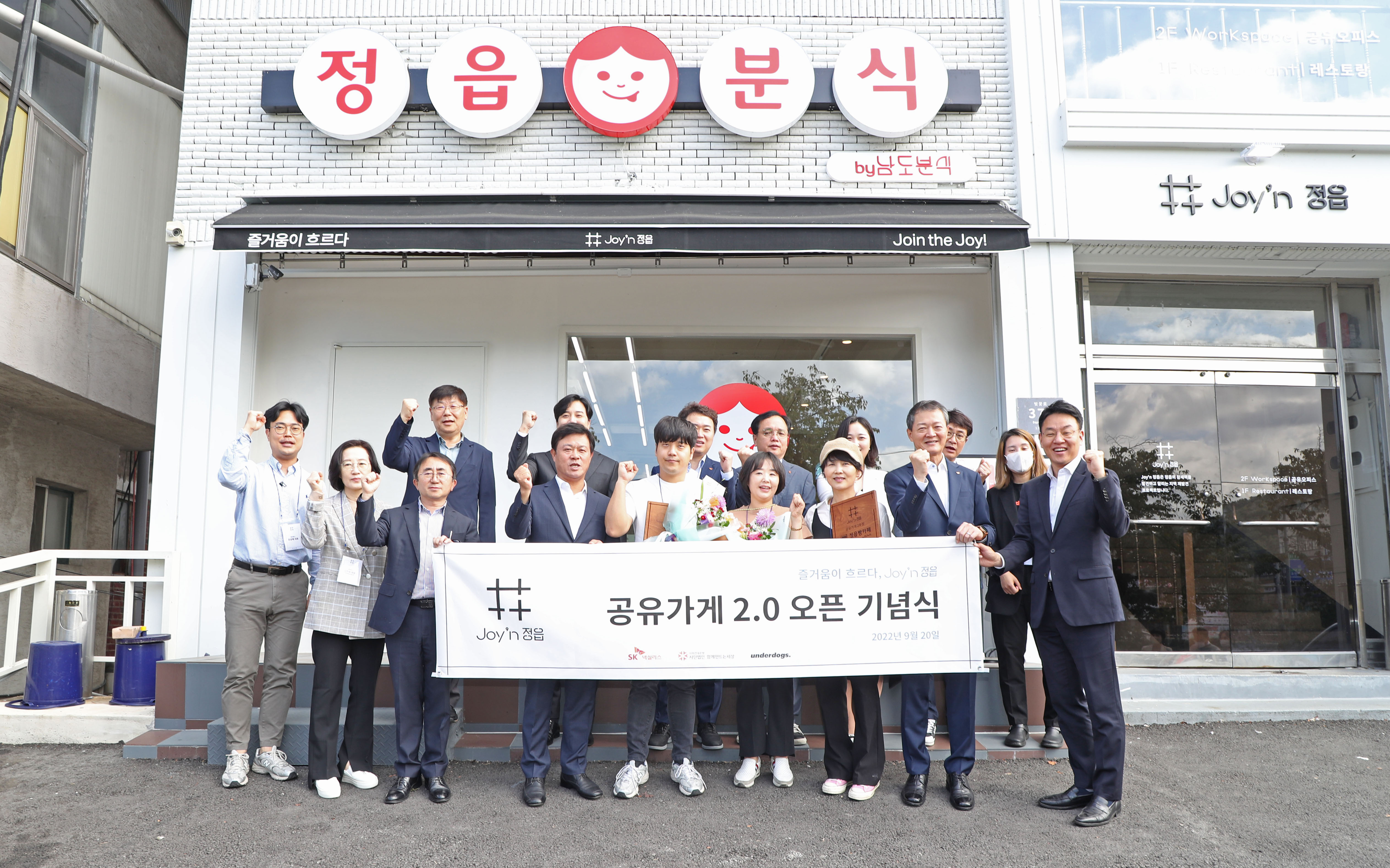 SK넥실리스는 전북 정읍시에서 20일 ‘조인정읍 공유가게 2.0’ 개소식을 열었다. 기존 브런치 가게가입점해있던 공유가게 1호점에는 전국적으로 인기가