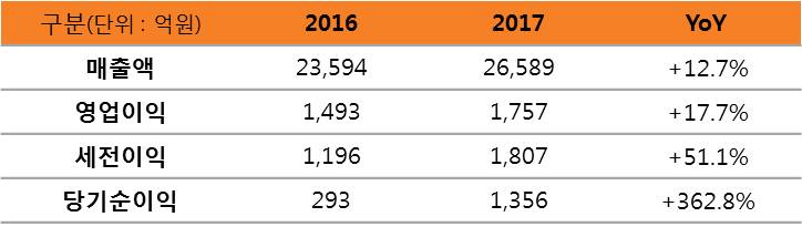 ● 매출 2조6,589억원 영업이익 1,757억원 기록··· 전년 대비 각각 12.7%, 17.7% 상승