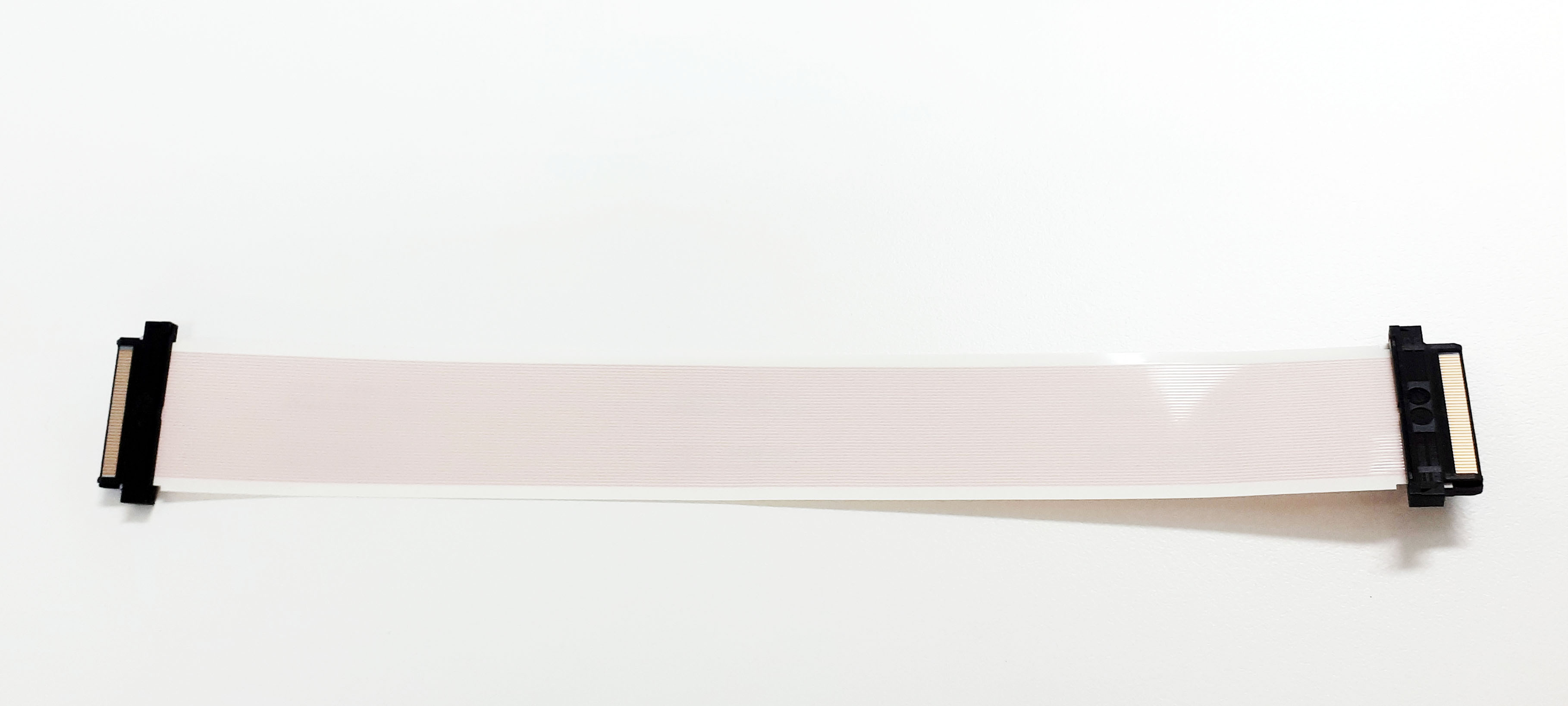 [SKC가 SK 케미칼과 협력해 세계 최초로 만든 PCT 필름을 사용한 자동차용 필름형 케이블 ‘플랙시블 플랫 케이블’.]
