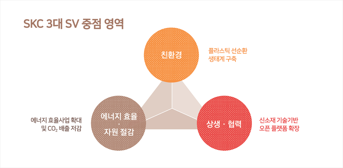 SKC는 온실가스와 플라스틱 등 중점 환경 영역의 이슈를 해결하기 위해 글로벌 이니셔티브 가입 및 SKC 주도의 국내외 파트너십을 강화하고 있습니다.